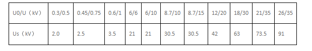 2、成品電纜應(yīng)經(jīng)受下表規(guī)定的交流電壓試驗(yàn)5分鐘不擊穿。